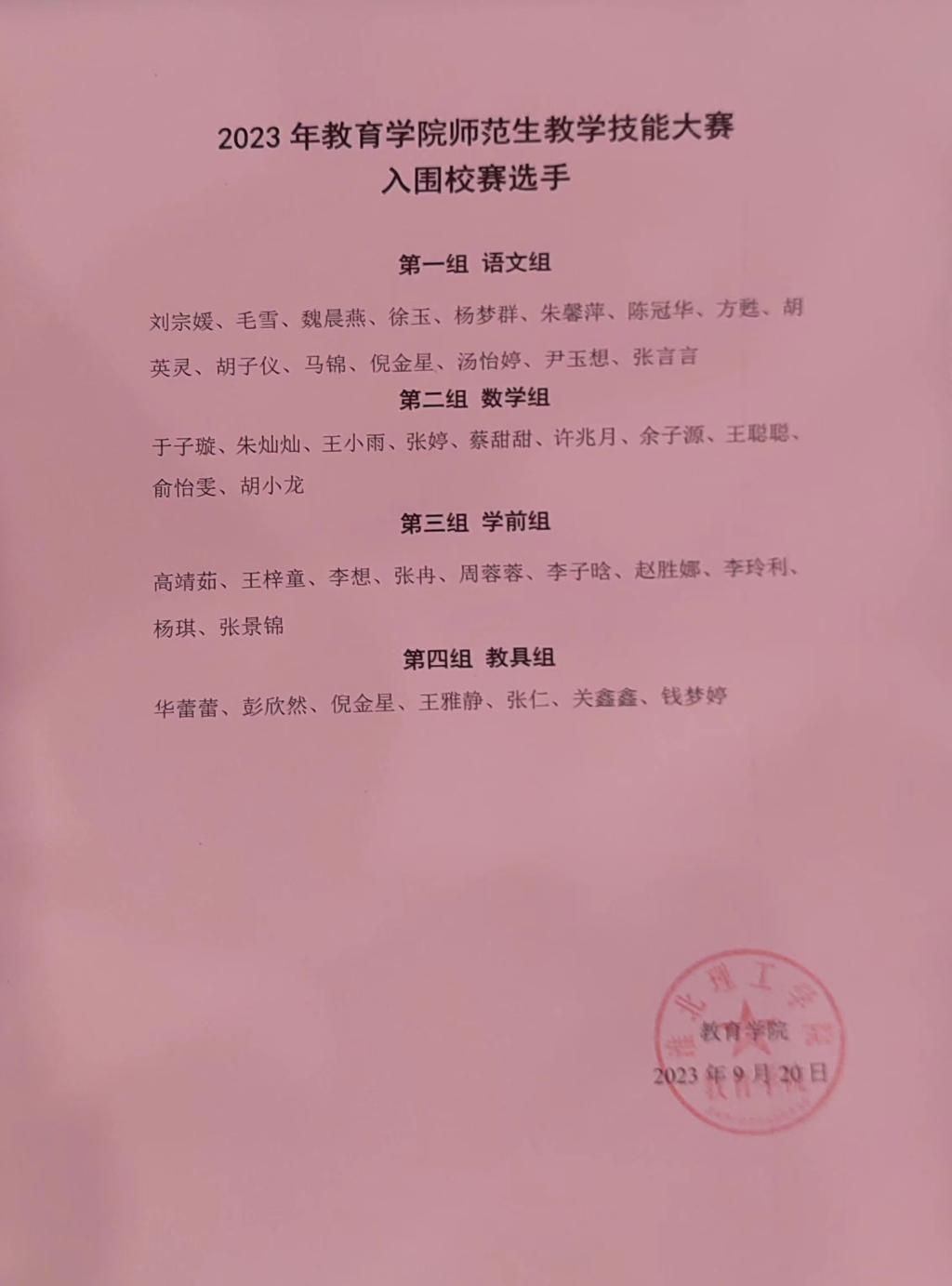 2023年Beat365中文官方网站师范生教学技能大赛入围校赛名单公示