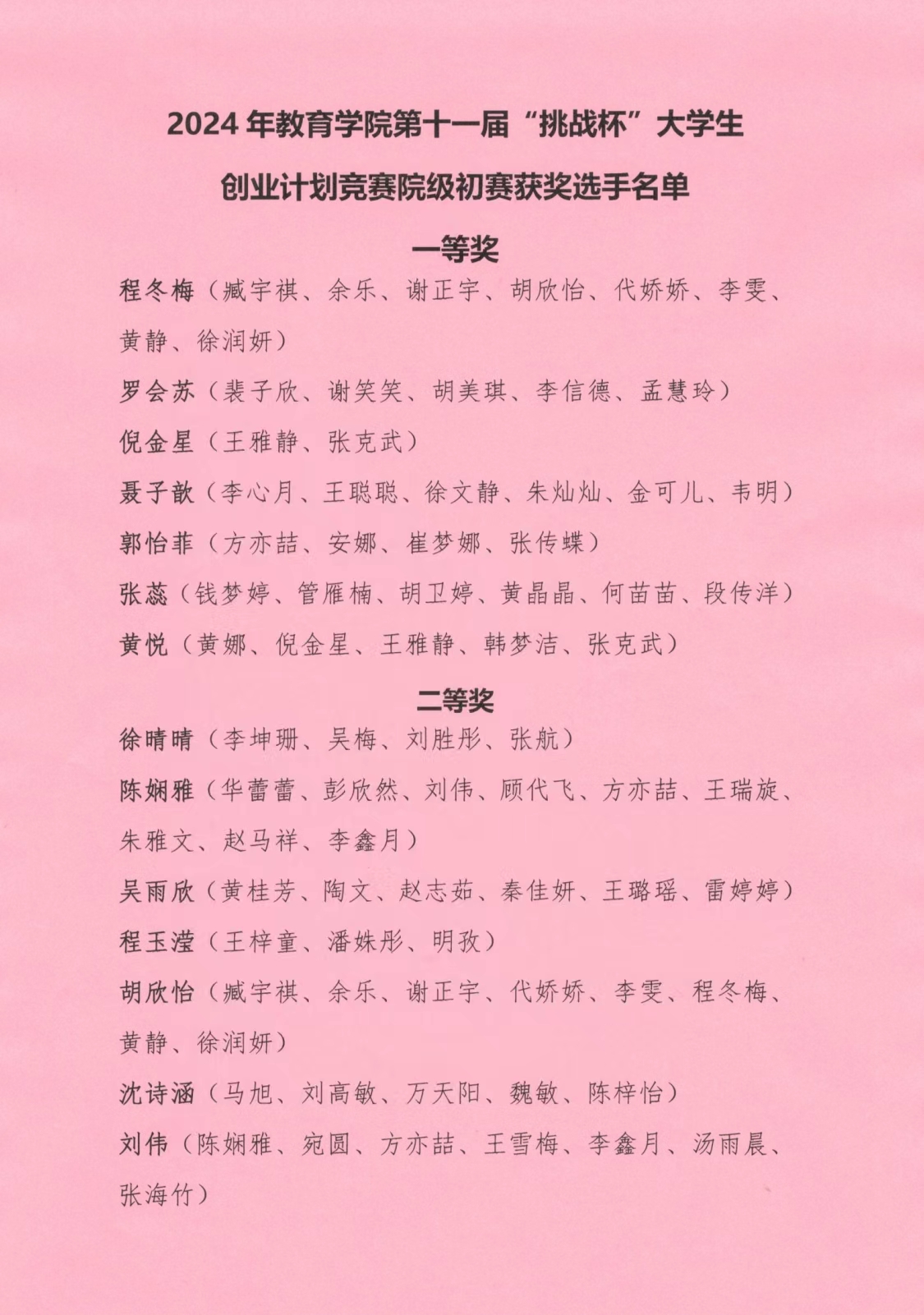 2024年Beat365中文官方网站第十一届“挑战杯”大学生创业计划竞赛院级初赛获奖选手名单