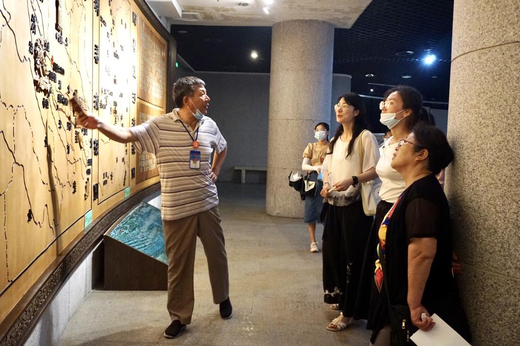 下午,实践团队一行又前往淮北市博物馆进行参观学习,进一步了解淮北的历史文化,了解淮北地区革命发展史和改革开放史。走进淮北市博物馆,队员们被博物馆珍藏的各类文物吸引,博物馆里展览着运河出土的陶器、瓷器、汉代石刻画像、展厅复制的遗址原貌等等。大家屏气凝神地聆听着故事讲解,感受着波澜壮阔的革命历史,深刻体会到中华传统文化底蕴的魅力,大运河无愧是中国古代文明中最具代表性和象征性的历史古迹。此外,淮北市博物馆的红色收藏展品也十分丰富,红色收藏承载着中国共产党和中华民族苦难光辉的历史和不屈奋斗的精神,它们是那个特殊时代的永恒印记,也为后人追忆往昔峥嵘岁月和初心使命提供契机。通过参观学习加深了大家对中国特色社会主义的认识。