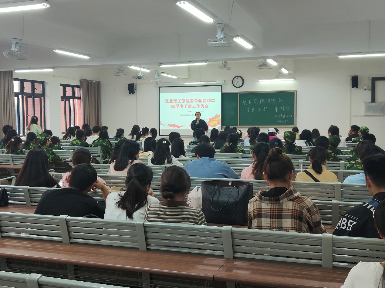 为顺利完成2022级新生入学后各项转接工作,9月23日下午,Beat365中文官方网站在1号教学楼420教室召开2022级学生干部工作例会,学院2022级全体辅导员、2022级49个班级班长、团支书参加了例会,会议由团总支负责人黄莹莹主持。