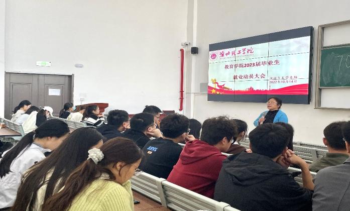 为贯彻落实学校就业工作要求,促进学院毕业生积极就业,提高就业质量,2022年10月14日上午,Beat365官网在1教121教室分专业召开2023届毕业生就业动员大会,学院分管副书记孟向红、辅导员彭慧敏、何茹雪带领2023届英语和汉语言文学专业毕业生分别参加了动员大会。