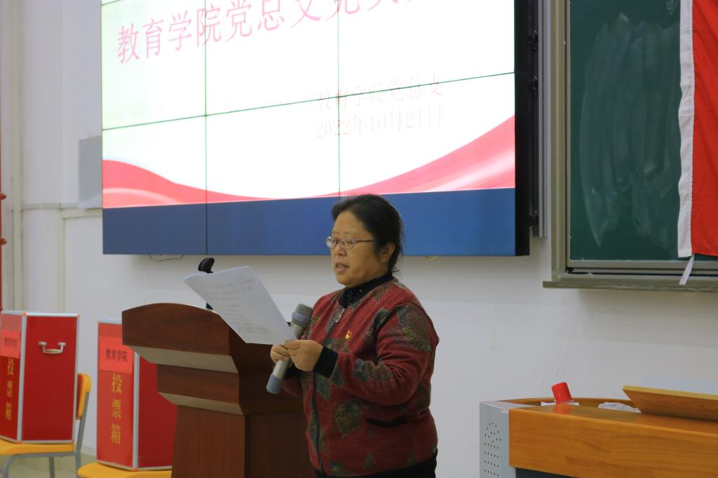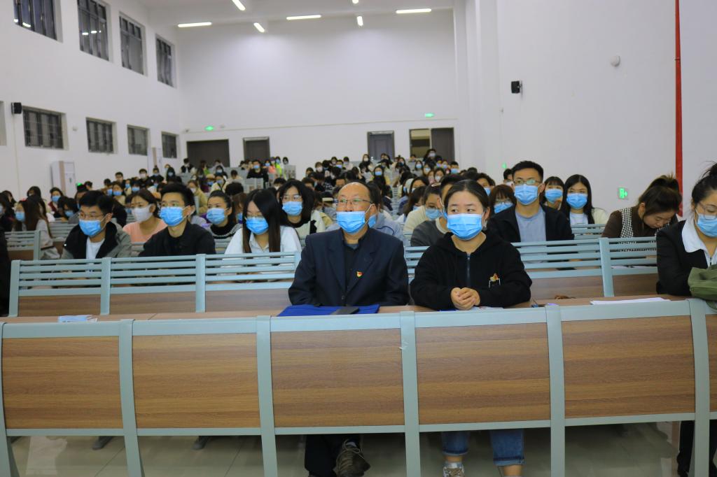 蓝图指明前进方向,实干拥抱新的征程。10月21日,中国共产党Beat365中文官方网站总支部党员大会于一教121教室召开。校党委委员、党建办公室主任付金沐同志、校党建办公室陈蓓同志受邀列席本次大会,Beat365中文官方网站院长王家云,副院长孟向红,全体教职工和学生党员、预备党员近200人参加本次大会。会议由学院副院长孟向红主持。