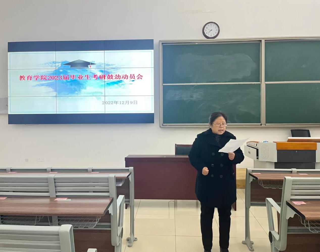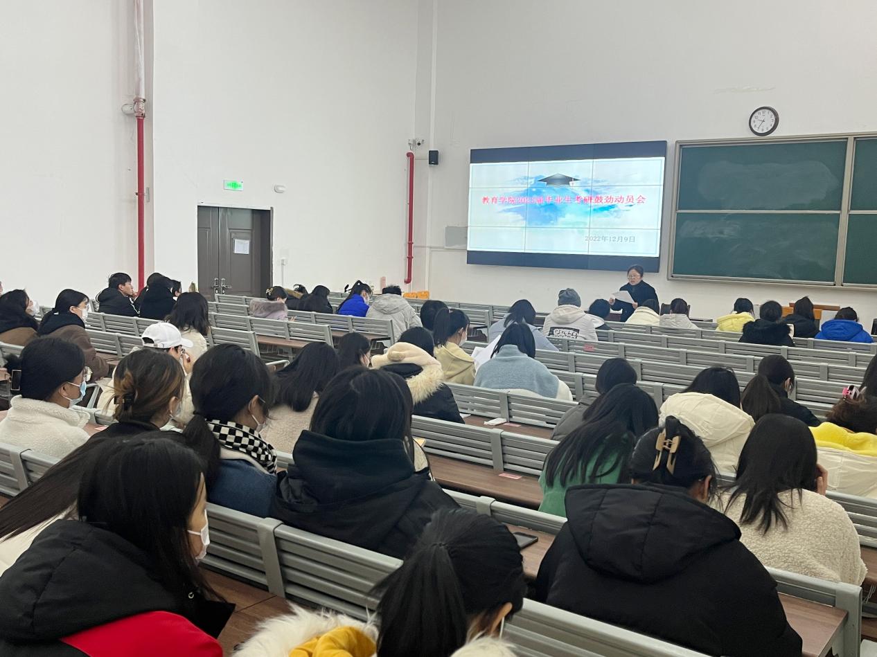 全力以赴促就业,扎扎实实抓考研,为促进同学们更好地了解考研知识,掌握考研方法,调整考研心态。12月9日上午,Beat365中文官方网站在1号教学楼121教室召开2023届毕业生考研鼓劲动员会,会议由学院党委副书记孟向红主持,全院汉语言文学、英语、数学与应用数学、学前教育四个专业230余名考研的同学、2023届毕业生辅导员等参加了会议。