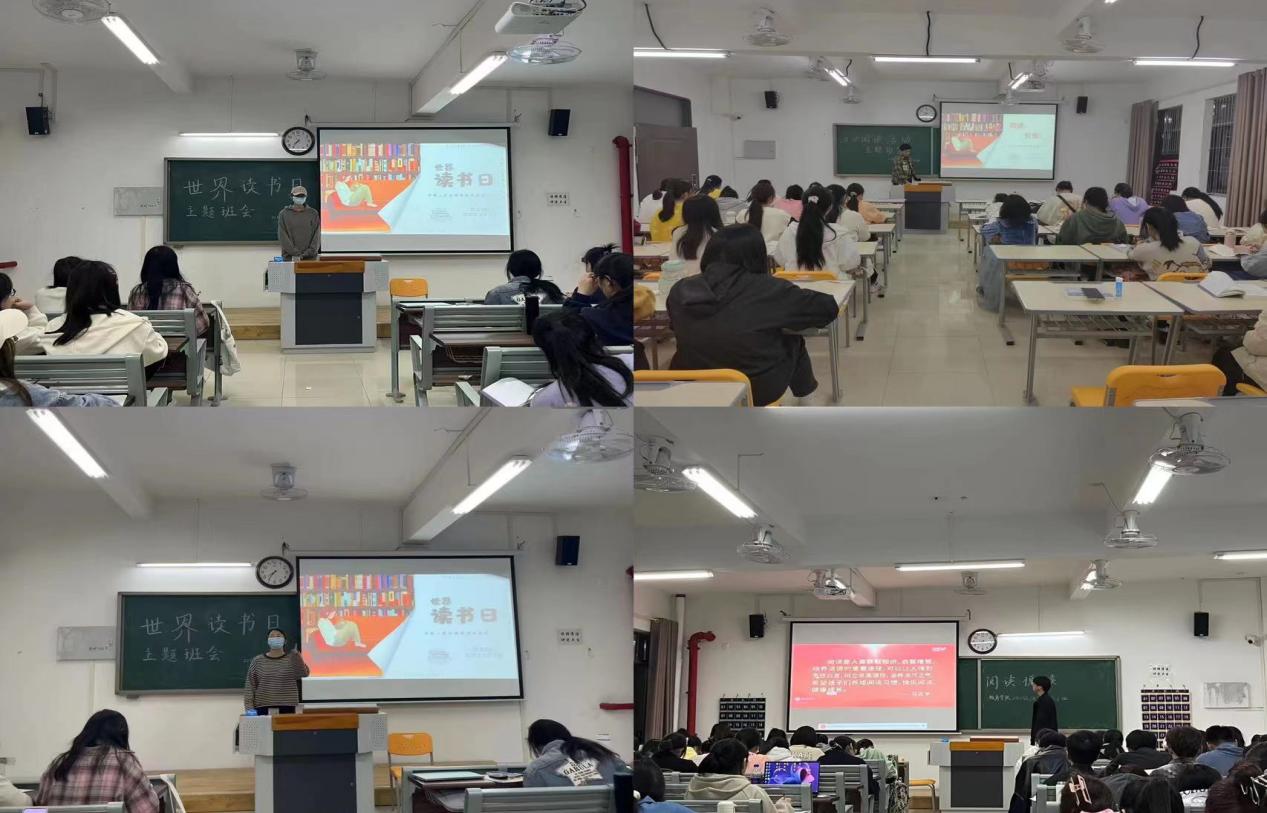 4月7日,22级汉语言文学专业10个班级在1号教学楼班级固定教室分别召开了“同享读书之乐,共建书香校园”主题班会。主题班会上同学们了解了世界读书日的来源,辅导员张颖颖、陈艺玮老师用PPT向同学们详细介绍了国家智慧教育读书平台的所包含的读书板块以及平台如何使用。