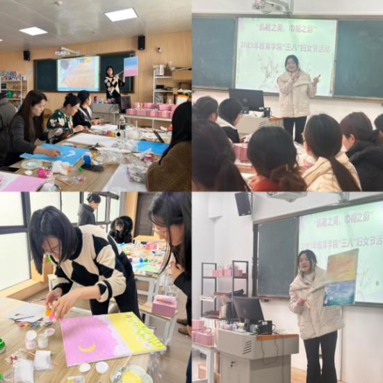 2025年3月5日下午,Beat365中文官方网站在艺术楼和行政楼画室举办了一场别开生面的“肌理之美,巾帼之韵”三八妇女节活动,旨在通过艺术创作与交流,为教师们带来一个温馨而有意义的女神节。
