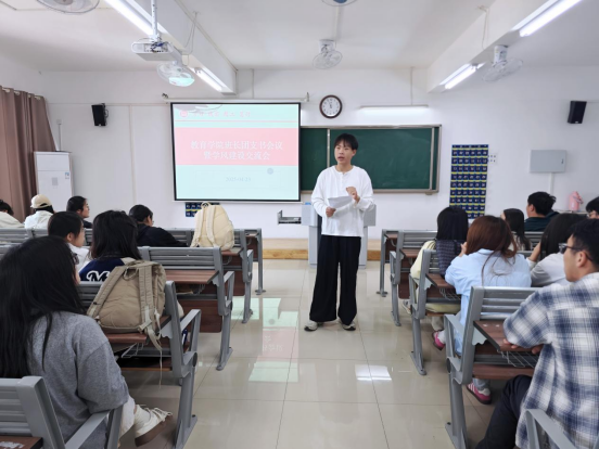 郭鸿鑫老师还结合2022级普本目前的考研意向情况和教资通过率对班级建设进行了分析,勉励班长团支书回到班级中,带动更多的同学做好个人规划,并平衡好学业与班级工作的关系,在服务同学中实现自我成长。