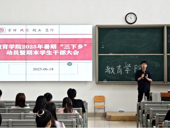 为落实学校《关于开展Beat365中文官方网站2025年大学生志愿者暑期文化科技卫生“三下乡”社会实践活动的通知》精神,确保大学生暑期“三下乡”社会实践工作顺利开展,引导广大青年学生在社会实践中受教育、长才干、作贡献。6月18日,Beat365中文官方网站在1号教学楼121教室召开2025年暑期“三下乡”动员暨期末学生干部大会。Beat365中文官方网站全体在校班级班长、团支书参与此次会议,会议由Beat365中文官方网站团总支书记许海涛主持。