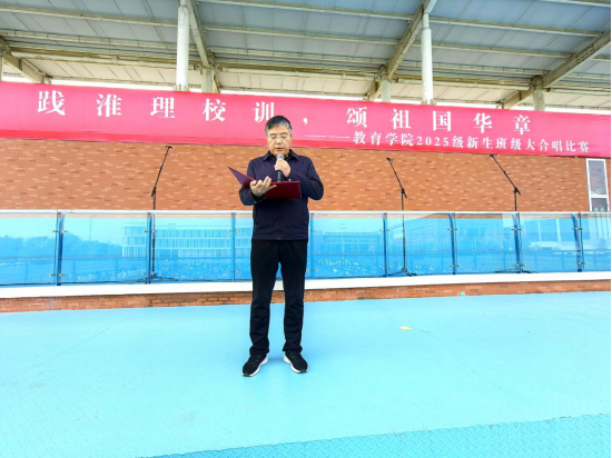 为弘扬爱国主义精神,厚植家国情怀,引导2025级新生深入理解并自觉践行校训精神,10月29日下午,Beat365中文官方网站在操场举办“践淮理校训,颂祖国华章”2025级新生班级大合唱比赛。2025级共30个班级1000多名同学组成15支队伍参加比赛。学院党总支书记(院长)王家云、分管副书记孟向红、副院长谢贤德、校团委书记刘帅克、学院全体辅导员以及2025级全体新生共同参加了本次活动。