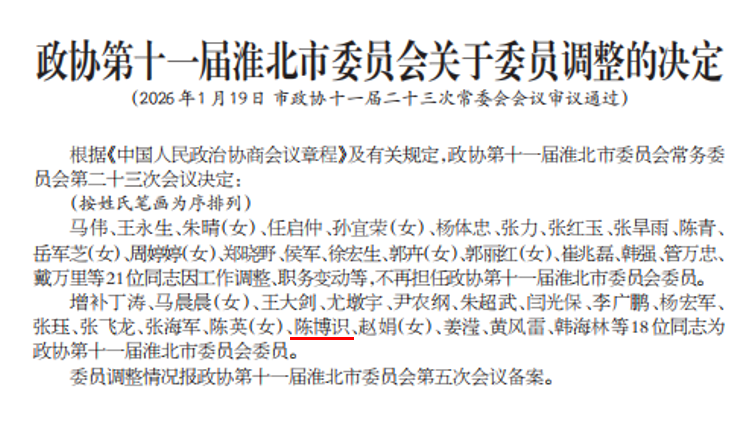 1月19日,经淮北市政协十一届二十三次常委会会议审议通过,Beat365官网英语教研室教师、九三学社社员陈博识增补为政协第十一届淮北市委员会委员。