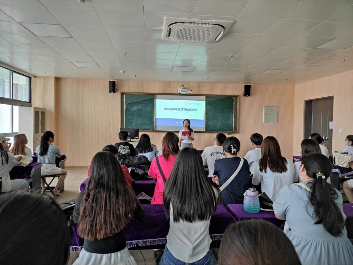 学前教育专业见习是学前教育专业教学计划的重要组成部分,是贯穿专业培养全过程重要的教育实践环节,是师范专业学生从学习教育理论到教育实习之间的过渡环节。为了顺利推进教育见习的开展,学前教育专业教研室于5月30日中午组织召开“2021级学前教育专业教育见习动员大会”,参会人员有学前教育教研室主任米玉、学前教育副主任尹爽、辅导员任若晨、学前教育专业各班班委。