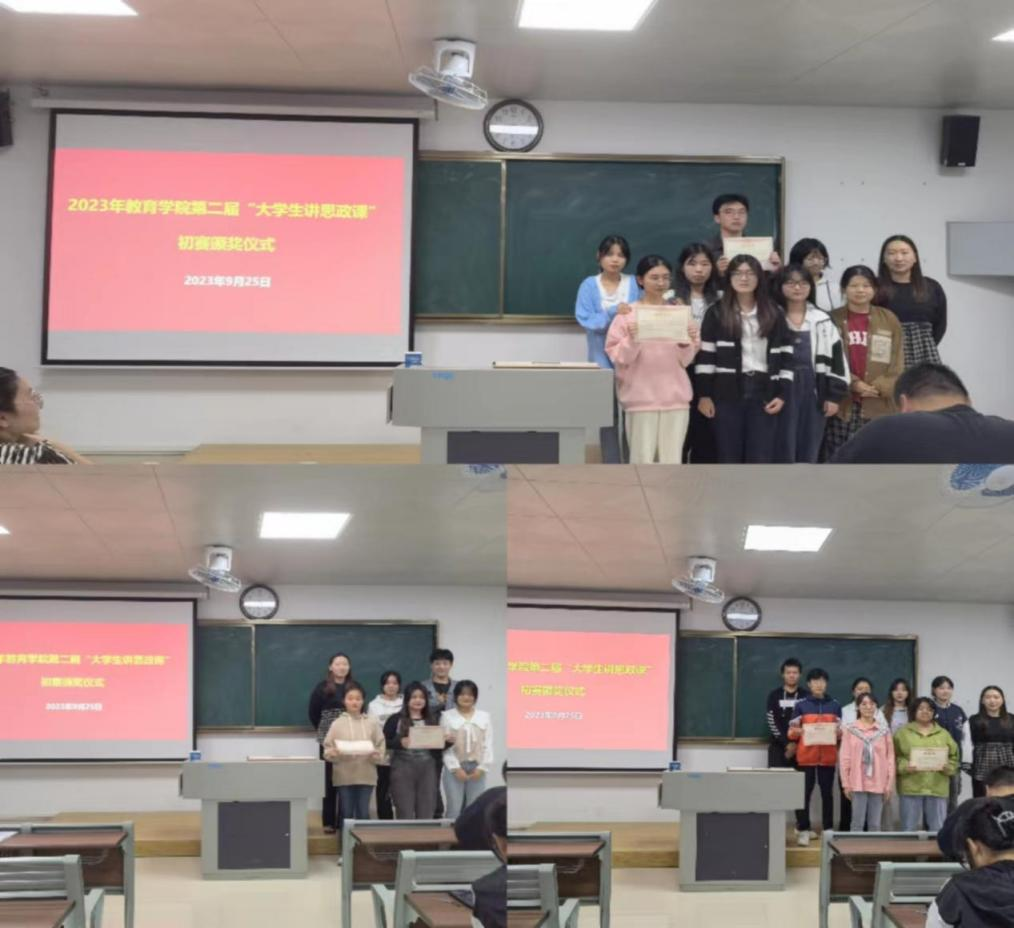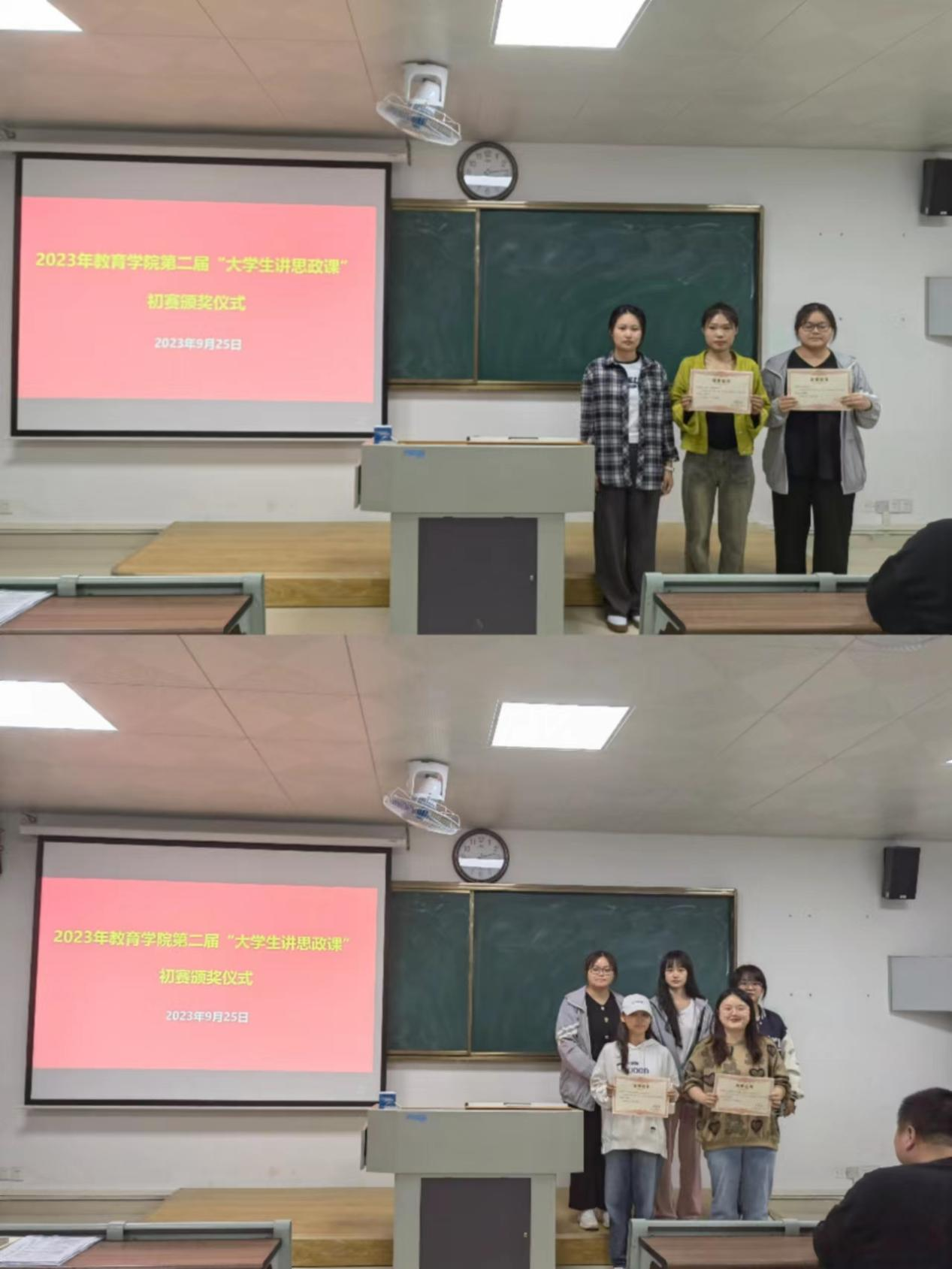9月25日晚,Beat365官网在2号教学楼207举行2023年第二届“大学生讲思政课”初赛颁奖仪式。Beat365中文官方网站院长助理王伟杰老师、书记助理黄莹莹老师、汉语言文学教研室主任章平老师、数学与应用数学研究室主任仇恒方老师、学前教育教研室主任尹爽老师以及30组获奖选手参加了颁奖仪式,本次颁奖仪式由学生助理张凌云主持。
