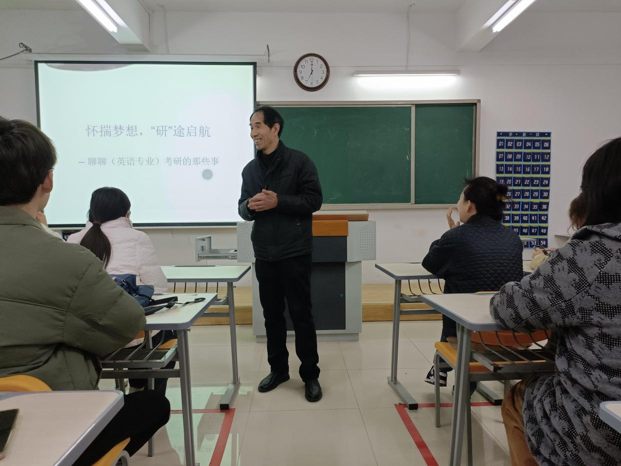 3月13日晚7点,Beat365中文官方网站在二教322教室开展英语专业考研辅导专题讲座。本次讲座面向2021级、2022级普本、2023级专升本学生。讲座由Beat365中文官方网站副院长谢贤德副教授主讲,全体英语教师列席。此次讲座旨在为我校英语专业考研学生提供英语考研的相关信息和备考策略,帮助他们更好地准备即将到来的考研挑战。