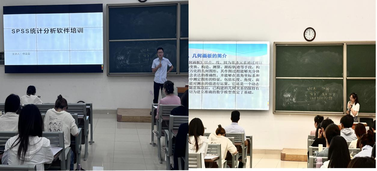 接下来,檀雷雷、杨柳、沈慈慈和蔡宇四位老师对数学建模过程中需用到的软件进行了介绍。檀老师和杨老师分别介绍了SPSS软件和几何画板软件的安装及使用,强调了软件学习的必要性与重要性。沈老师和蔡老师分别阐述了MATHTYPE编辑器和MATLAB软件的安装及使用,嘱咐参赛队伍要利用假期时间通过bilibili视频平台、知乎、MOOC等相关网站进行软件学习。