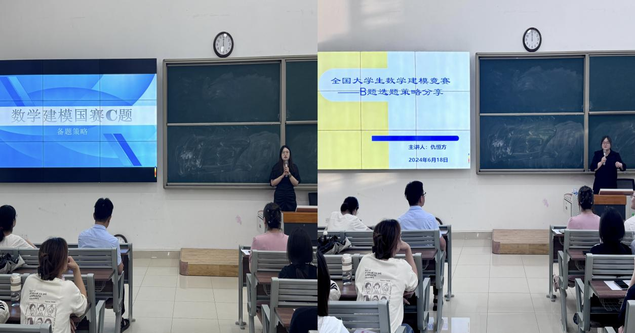 随后,葛康康、仇恒方和赵琪三位老师分别对A、B、C三类赛题展开了选题策略分享,并对参赛学生提出期望,鼓励同学要勇往直前,不畏惧困难。
