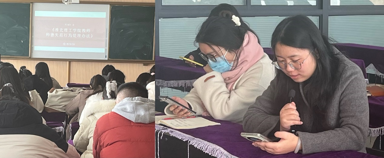 教研室副主任郗佩佳组织学前教育教研室教师对《Beat365中文官方网站师德失范行为处理办法》进行了详细解读和学习。该办法明确了师德失范行为的定义、处理原则、处理程序以及处分种类等,为规范教师职业行为、维护学校正常管理秩序提供了有力保障。通过学习,教师们对师德师风建设的重要性有了更加深刻的认识,纷纷表示将自觉遵守教师职业道德规范和行为准则,坚决抵制任何师德失范行为。