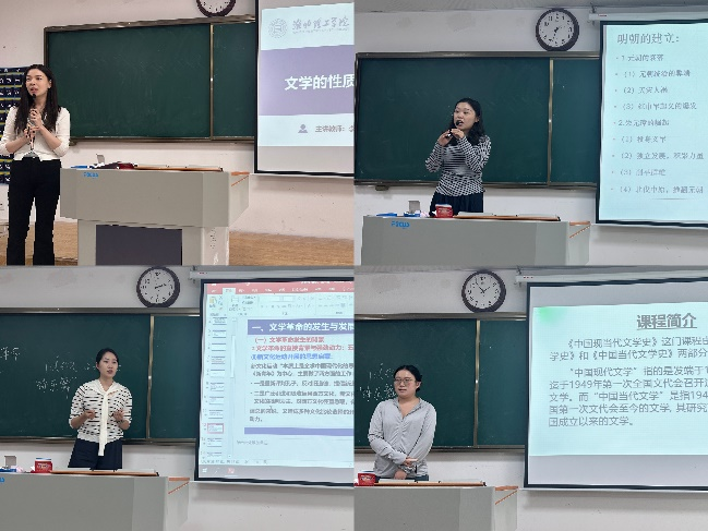 各位新进教师以饱满的热情和自信的姿态依次登台试讲,向在座的青年教师评委们展现了良好的知识能力和教学素养,也充分体现出了汉语言文学教研室青年教师队伍昂扬向上的精神风貌。