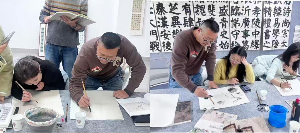 在掌握基础技巧后,老师们纷纷拿起毛笔,各展身手投入创作。大家根据自己的喜好和擅长,自主选择临摹题材。有的钟情于清雅脱俗的兰花,笔下的兰花幽香淡雅,笔墨间尽显对美好事物的向往;有的偏爱生动鲜活的人物,寥寥数笔便勾勒出神态各异的形象,传递出人物的精神状态;还有的专注于矫健的骏马,挺拔的身姿跃然纸上。创作过程中,老师们相互交流心得、切磋技艺,遇到难题时主动向任教师请教,现场既洋溢着浓厚的学习氛围,又充满了轻松愉悦的互动气息。