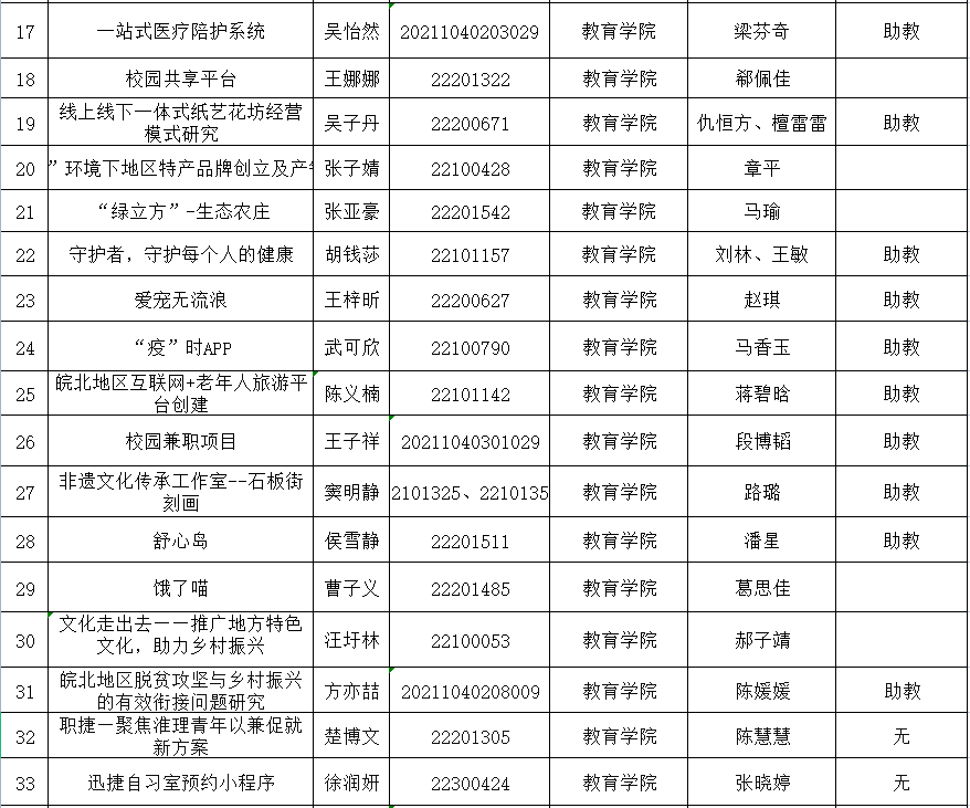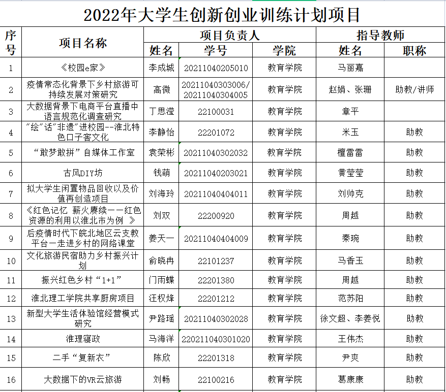 Beat365中文官方网站2022年安徽省大学生创新创业训练计划项目立项公示表.xlsx