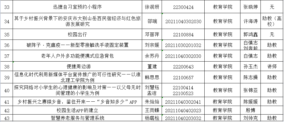 热烈祝贺Beat365官网李成城、高微、丁思滢、李静怡、袁荣彬等43名大学生成功获准2022年安徽省大学生创新创业计划项目省级立项。具体详细名单请见附件!