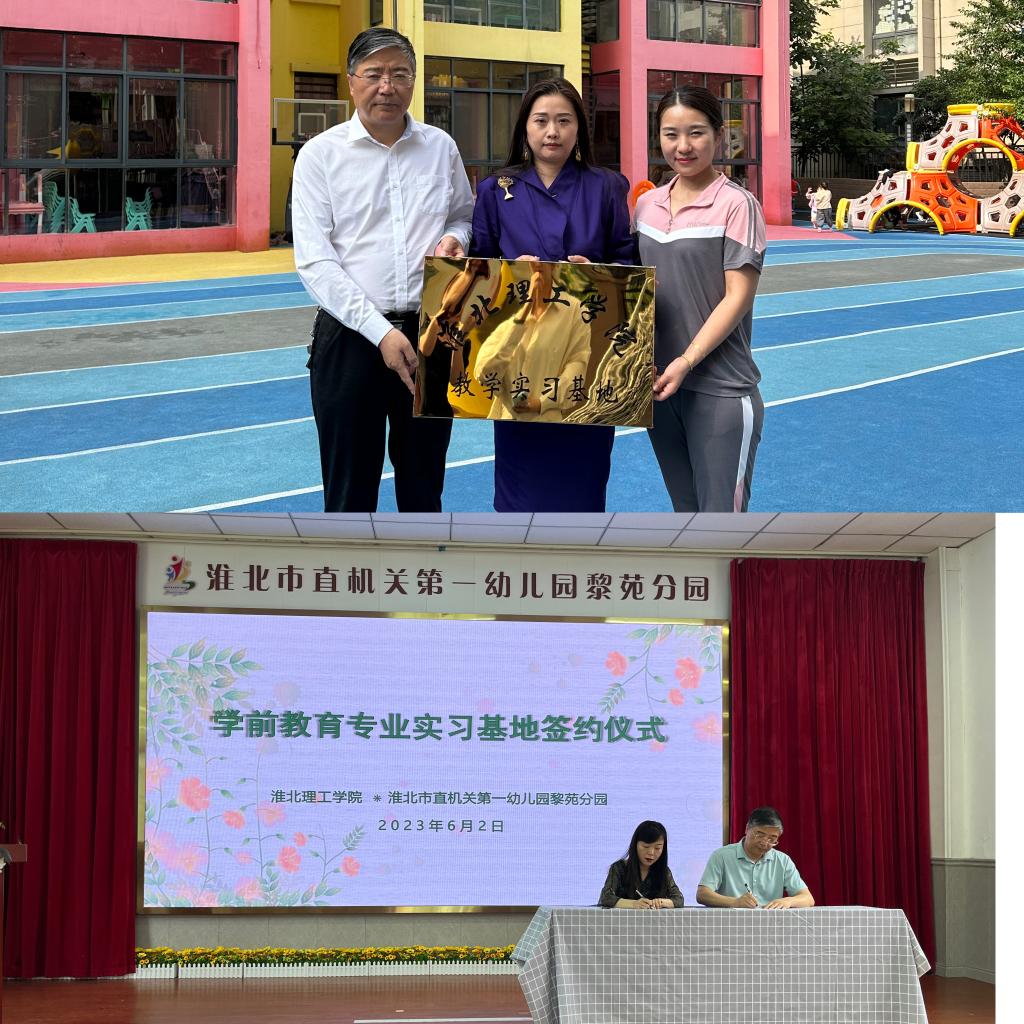 为提升学前教育专业人才培养质量,培养学生实践技能,打造实践育人广阔平台,2023年6月2日上午、6月5日上午,Beat365官网来到淮北市直机关第一幼儿园国购分园、黎苑分园、凤凰分园,红缨东渡苑幼儿园、大风车幼儿园、杨柳幼儿园,进行实习基地挂牌签约,建立实践教学基地共建关系。Beat365中文官方网站王家云院长、学前教育教研室负责人尹爽、郗佩佳,各个幼儿园园长以及教师代表出席仪式。