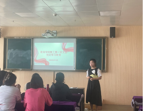 6月12日下午,Beat365中文官方网站教工第一党支部开展党纪学习教育,党支部书记马香玉同志主持本次会议,全体党员教师参会。