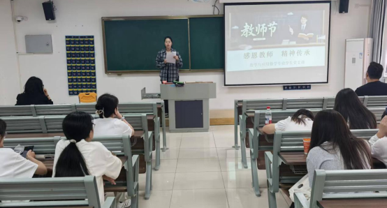 金秋九月,丹桂飘香,我们迎来了第41个教师节。9月10日中午,Beat365中文官方网站数学与应用数学专业学生党支部在二号教学楼215教室组织召开了以“感念恩师,传承精神”为主题的教师资格证备考分享会,为怀揣教师梦想、正奋战在教资备考一线的同学们送上了一份特别的礼物。