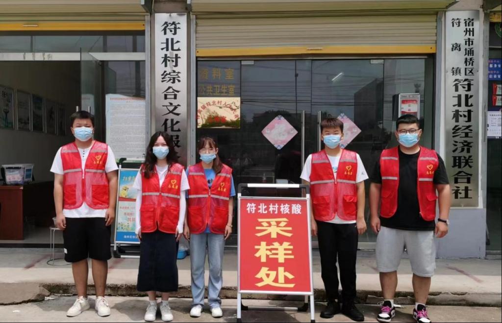 2021级应数1班王明硕所带团队成员积极参与埇桥区疫情防控工作。埇桥区青年志愿者协会为配合全区做好疫情防控各项工作,特面向全区广大青年群体招募志愿者,队员们成为协会的志愿者积极协助社区开展了一轮又一轮的全员核酸检测工作,他们顶着高温,依然热情、耐心地协助居民进行信息登记、扫码、维持现场秩序,引导居民一米间隔有序排队、讲解检测流程等。用实际行动诠释当代青年人的使命和担当,他们明白这场疫情防控阻击战中没有旁观者,每个人都要为打赢这场战役努力。