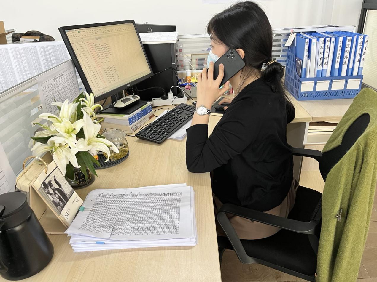 辅导员陈媛媛老师在接到防疫办“疫情密接者”通知后,迅速联系“密接同学”,并细心安抚学生情绪,叮嘱该学生及其同寝室同班级的同学做好个人防护,等待隔离。其他辅导员老师通知全体在校同学立即返回宿舍,并对未返校学生逐一打电话确认位置,力求保障每一位同学的安全。新辅导员陈艺玮老师对未返校的同学逐一进行心理疏导,树立起同学们对学校和老师的信心。校园里随处可见校领导、辅导员们忙碌的身影,无论是引导全员核酸检测,还是为封楼同学的送餐服务;无论是对学生的线上心理辅导,还是对在校学生各种诉求的解答,辅导员老师们都亲力亲为,各司其职,在病毒肆虐的暗淡中形成了一道靓丽的风景线。