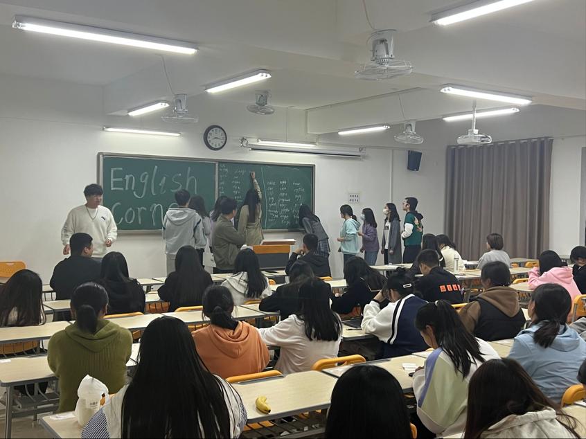 活动开始,主持人曹子义同学发言,引入本次英语角的主题“Love”,主持人也给大家共享了他的想法。接着,张莹莹同学以一首英文歌曲“Love story”大大提高了同学们的热情,为全场营造了一种活跃热闹的氛围,鼓励了更多的同学积极展现自己。随后又进行了“单词接龙”和“你说我猜”英语游戏竞赛。整场活动持续一个半小时,整个过程中,大家都沉浸在轻松和谐的气氛里。同学们不但讨论了这次的主题,谈到了如何让英语专业的活动变得更有意义,也讨论到他们各自感兴趣的话题。