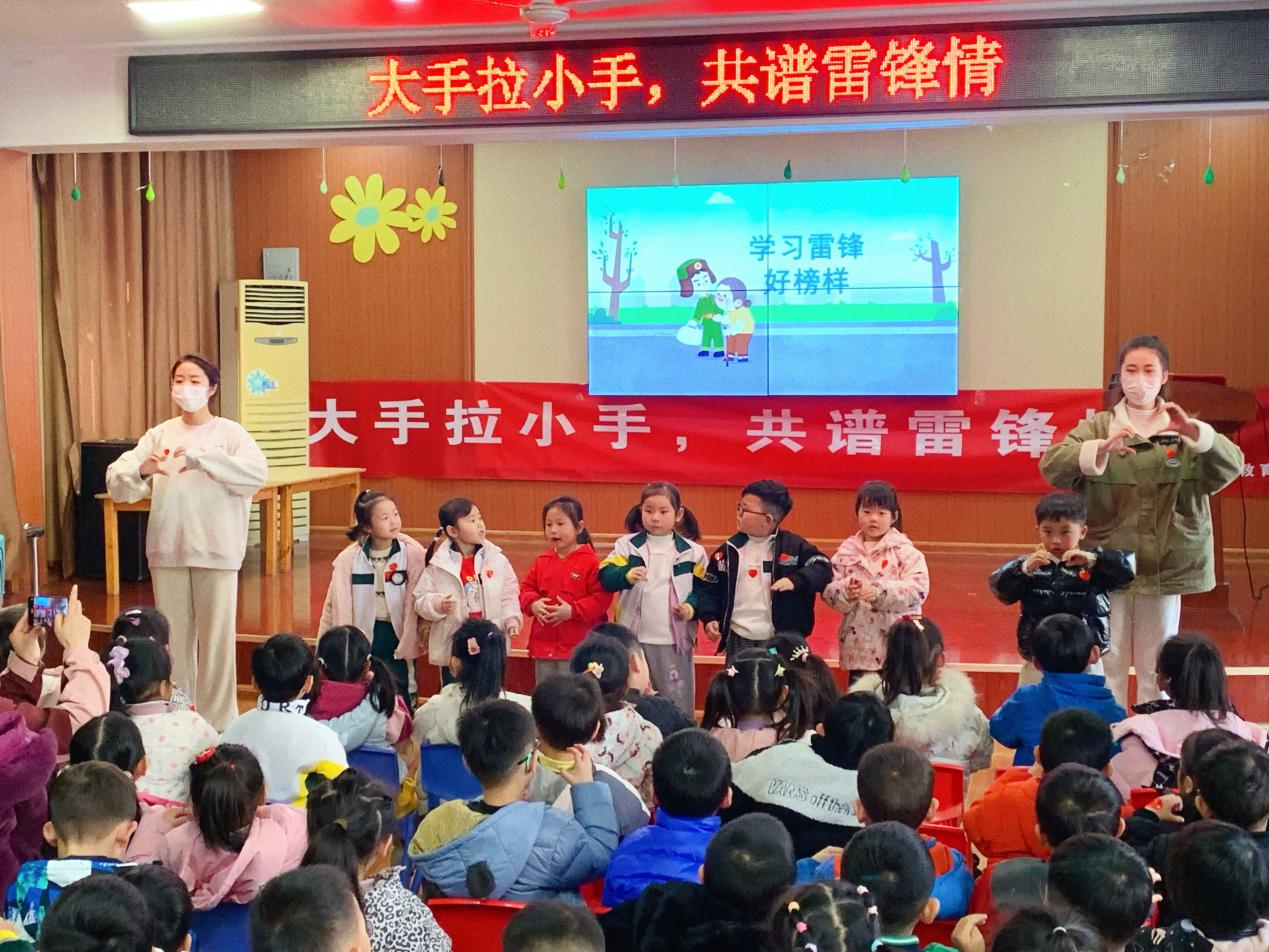 (22级学前专升本1班施国炜为小朋友们讲述雷锋事迹并进行知识问答)