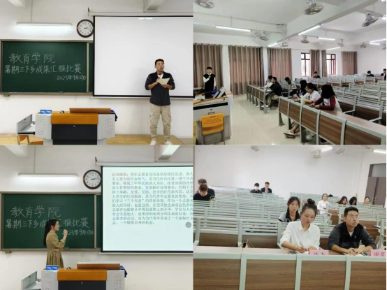 Beat365中文官方网站暑期开展三下乡社会实践活动,旨在锻炼学生社会实践能力,9月27日下午,Beat365中文官方网站于2号教学楼415教室、416教室、417教室举办三下乡成果汇报比赛,由23级辅导员老师担任评委,各实践团队同学参加。