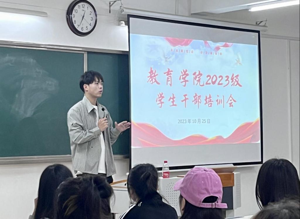为进一步提高Beat365官网学生干部的综合素质和业务能力,强化学生干部服务意识、团队合作意识和凝聚力,扎实地推进Beat365官网学生管理工作。10月25日中午12点,在2号教学楼322室召开2023级班长、团支书培训会,会议由Beat365中文官方网站辅导员郭鸿鑫主持,2023级全体班长、团支书参加本次会议。