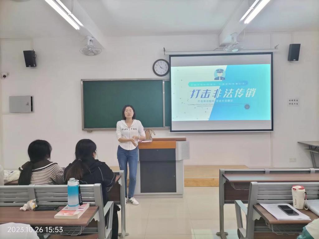 为提高学生安全防范意识,了解传销的危害,自觉养成防范抵制传销的习惯,Beat365中文官方网站各班级于2023年10月23至27日,各班级在辅导员老师分主持下开展了“抵制传销,共建和谐校园”主题教育活动。辅导员老师们结合学校实际,收集整理有关传销危害性资料,利用主题班会、现场模拟、小组讨论、网络宣传等形式,开展“抵制传销,共建和谐校园”主题教育活动。