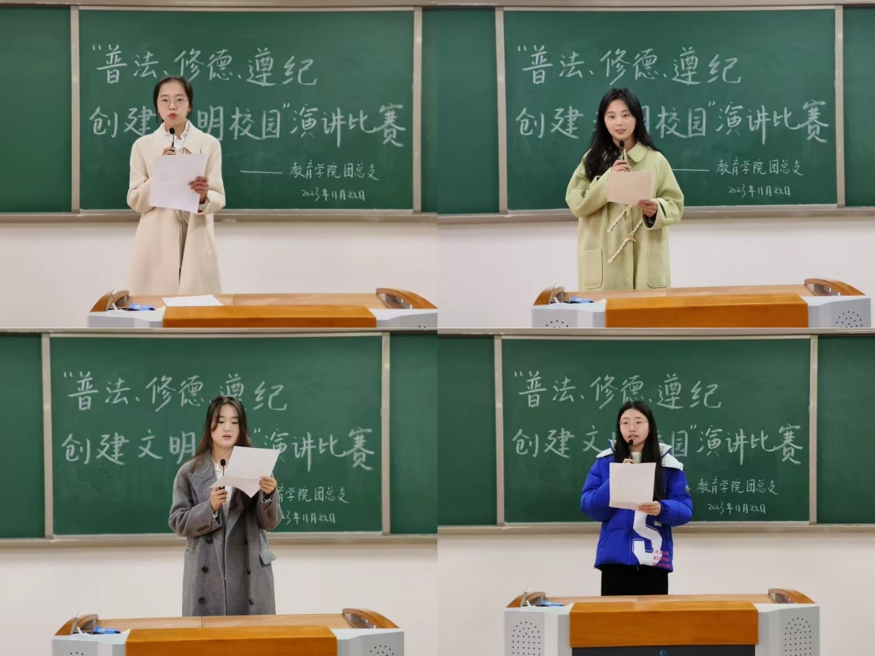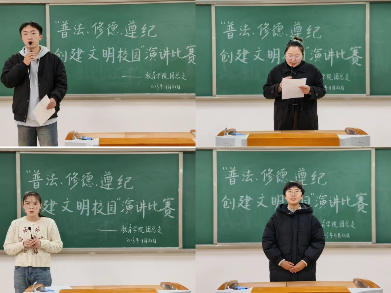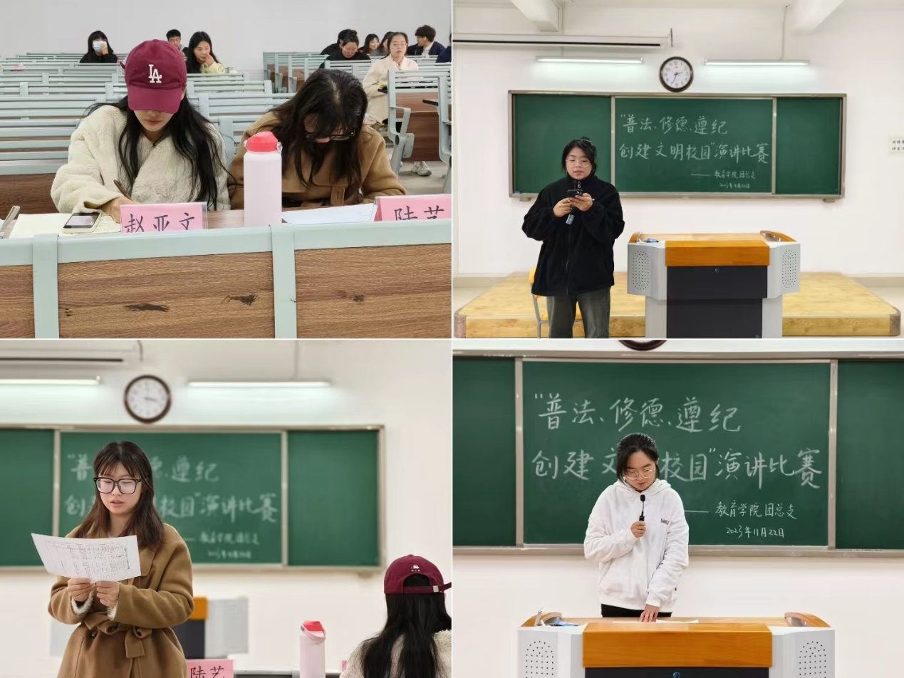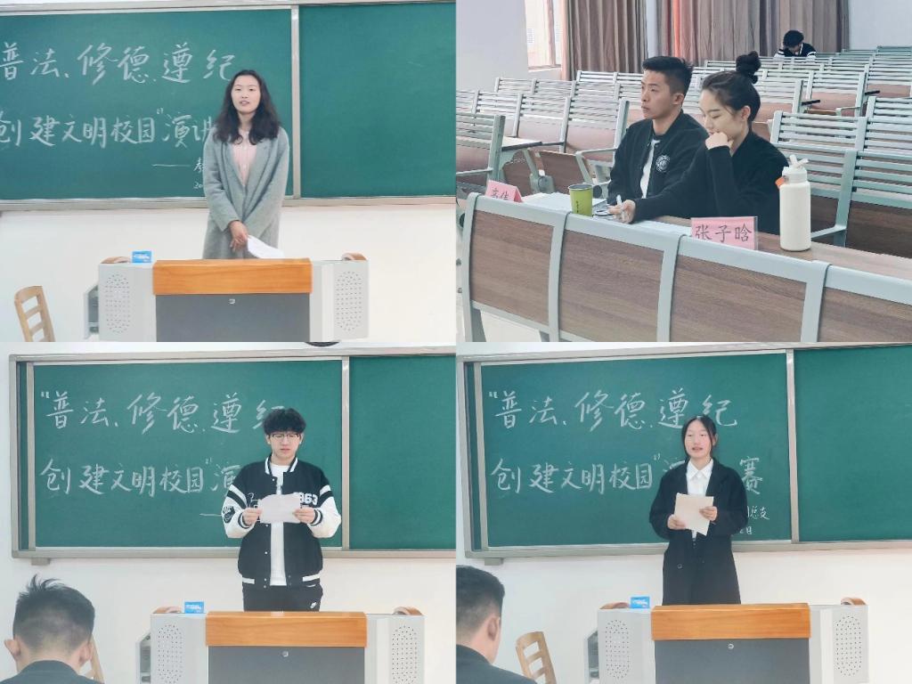 为落实学校《关于开展2023年“普法、修德、遵纪,创建文明校园”专项活动的通知》精神,提高同学们的法律意识,大力弘扬法治精神,创建学风校风优良的文明校园,Beat365中文官方网站于11月22日下午在2号教学楼412、413、414、415、416教室分别开展以“普法、修德、遵纪,创建文明校园”为主题的演讲比赛。学院2023级辅导员老师担任评委。