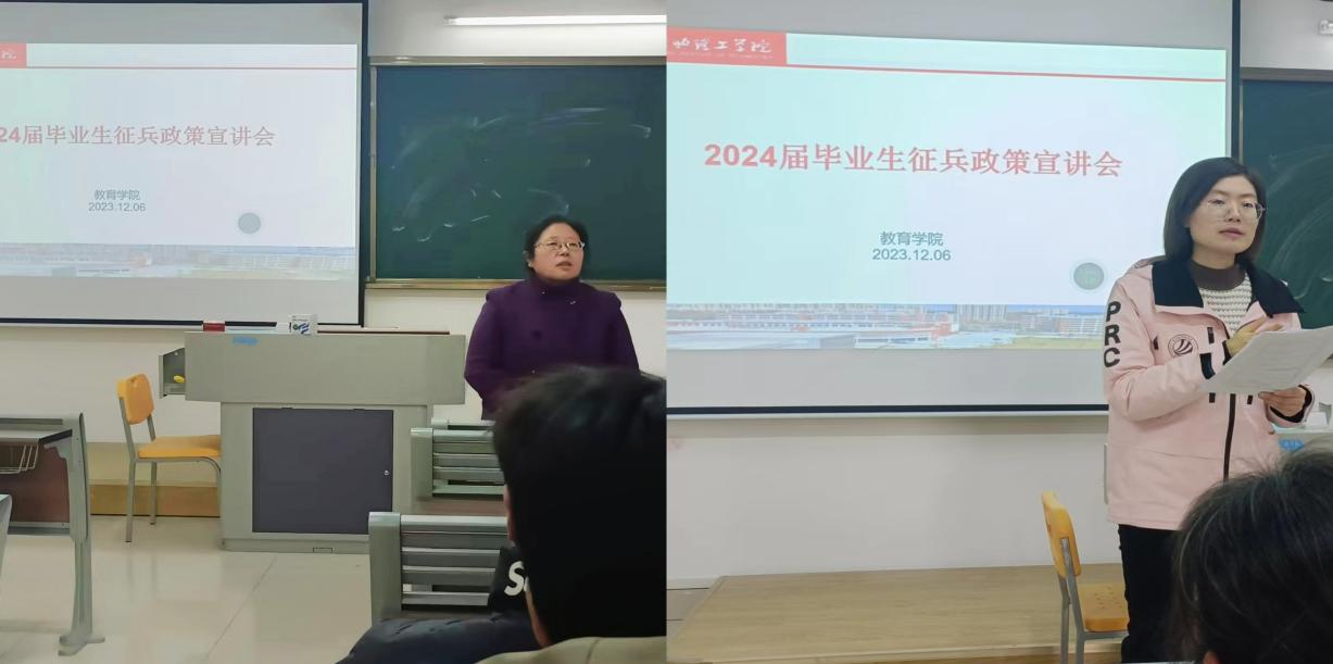 “国无防不立,民无防不安”,为增强广大青年学子的国防意识、建立良好的国防素质、深化爱国主义思想,充分发挥退役大学生军旅经历优势,营造高校爱国拥军良好氛围,Beat365中文官方网站于12月6日下午,在1教219教室举行2024届毕业生征兵动员暨政策宣讲活动。学院分管副书记孟向红、书记助理黄莹莹、辅导员任子慧老师及2024届毕业班男生线上线下同步参加了活动。