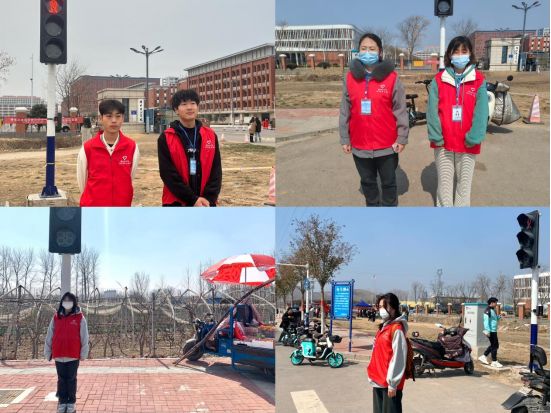 本学期,学校对面的快递站营业,很多同学需要去马路对面的快递站拿取快递,面对川流不息的车流,“安全过马路”成了同学们日常生活需要面对的问题,学生会成员发现后自觉组成志愿服务小组,利用每天中午和下午放学时间提前到达校门口,进行红绿灯路口安全守护志愿服务,志愿者们穿着红马甲、佩戴工作证提醒同学们安全通过斑马线,尤其在学生流动高峰期,及时地提醒和劝导保障了同学们的交通安全。靓丽的红马甲成为校外红绿灯路口的一道风景线,学生会工作者用文明礼貌的行动传递着雷锋精神,为营造文明安全有序的交通环境做出贡献。