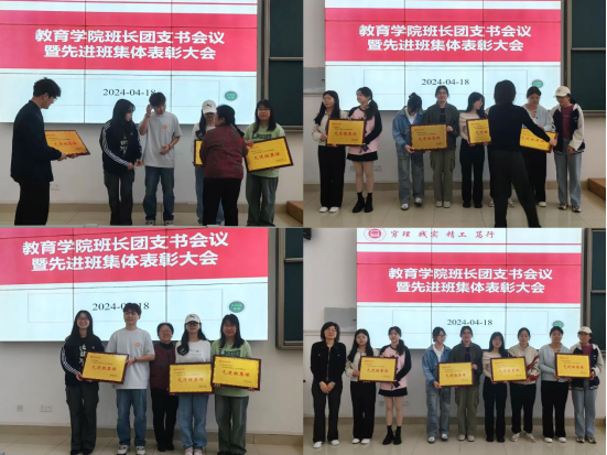为进一步提高班长团支书业务能力,培养学生干部综合素质,强化学生干部队伍建设,促进学院学生管理工作更好开展。Beat365中文官方网站于4月18日中午在1号教学楼121教室召开班长、团支书会议暨先进班集体表彰大会。本次会议由学院团总支副书记许海涛主持,学院分管副书记孟向红、书记助理黄莹莹、辅导员以及非毕业班班长、团支书参加了会议。