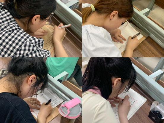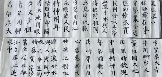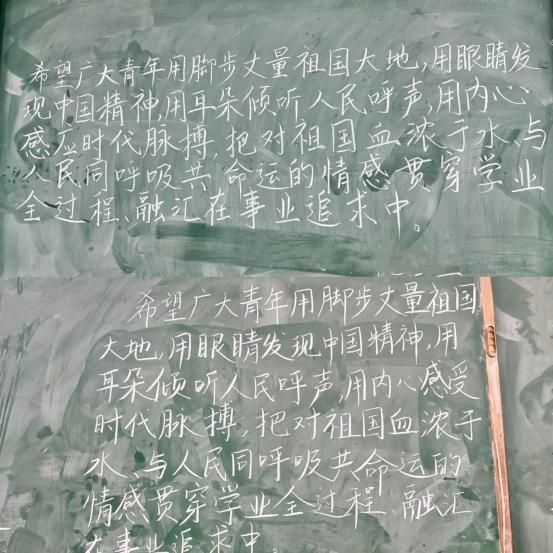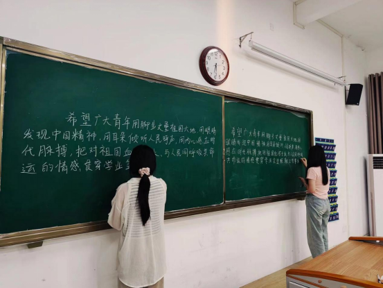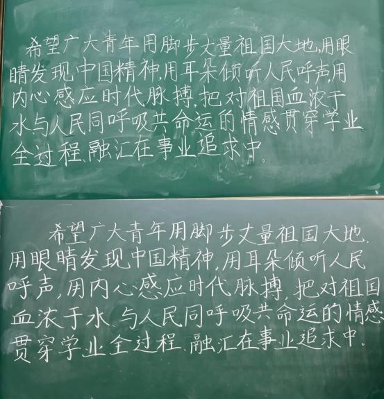 参赛的选手们个个有备而来、凝神静气,在信笺上、黑板上精耕细耘,在横竖撇捺的书写之中,展现中华汉字之美。赛后,评奖小组经过认真筛选,将符合要求的作品上传至学院团属微信公众号,以公众投票形式对作品进行评奖,软笔和黑板字通过专业书法老师进行评奖。