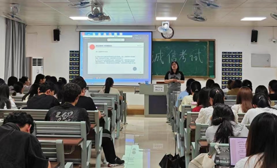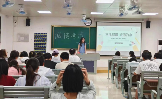 为有效维护公平公正的考试环境,端正考风考纪,强化学生诚信自律意识。6月5日,Beat365中文官方网站各班级在1号教学楼召开“诚信考试教育”主题班会,各班级辅导员老师到班主持,全体同学参加本次会议。