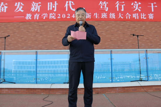 院长王家云为比赛致辞。他说,新生大合唱是Beat365官网最重要的集体活动之一,从2021年学校创办以来开始举办,至今已经是第四届,举办大合唱就是要凝聚同学们的爱国情、熔铸同学们的淮理心、点燃同学们的奋斗志、汇聚同学们的勤奋力、助力同学们的的明天梦,“踔厉奋发新时代,笃行实干谱新篇”不仅是本次活动的主题,也是对每位同学的勉励和期望,希望同学们用歌声展现爱国主义情怀和中华儿女的自信自强、守正创新的精神气象。