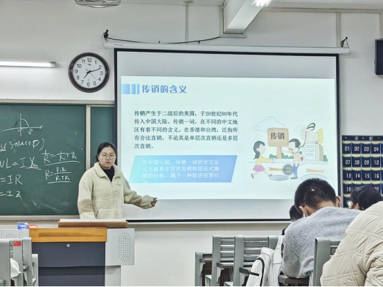 活动以班级为单位组织召开防范传销主题班会,班干部讲解传销相关知识并组织学生观看防范传销的PPT,开展班级讨论,让学生分享自己对传销的认识和看法,以及身边可能存在的传销风险。