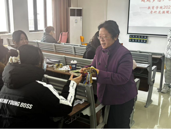 分发完温暖的礼物后,孟向红寄语学院考研学子,在考研最后冲刺阶段,要保持良好的心态,相信自己,坚定考研毅力,坚持到底,学院始终是考研学子最坚强的后盾,衷心祝愿考研学子旗开得胜、心想事成、一“战”成硕,表达了对考研学子的深切期望。随后各班辅导员也纷纷为考研同学加油鼓劲,鼓励同学们保持良好心态,相信自己的付出必有回报,同时也提醒同学们查缺补漏,合理作息。