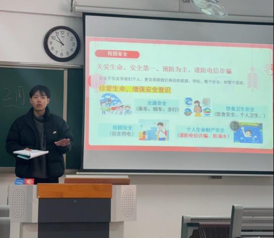 各班辅导员围绕校内外交通安全、食品卫生及金融风险防范、网络文明及防范电信诈骗、宿舍用电及消防安全等方面,开展了深入细致的安全教育。辅导员通过案例分析、视频播放、互动问答等形式,向同学们普及了安全知识,强调了安全的重要性。