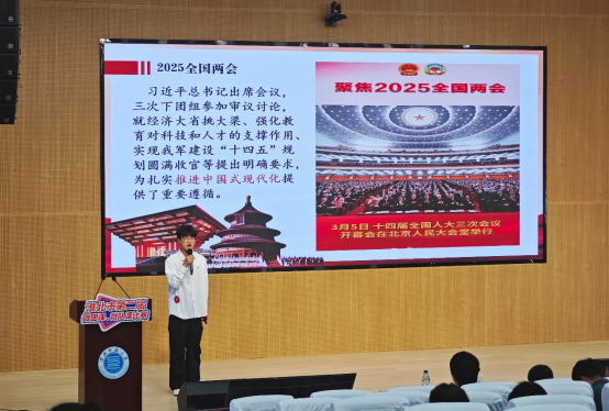 比赛中,杨裕杰以《青春“政”当时,挺膺新征程》为题,从“立鸿鹄之壮志,做青春奋斗者”等三个维度展开论述。他以刘开渠同志的雕塑成就和自己的乡村支教经历等鲜活案例为切入点,在9分钟的展示中构建起“理论阐释—实践映照—青春誓言”的完整逻辑链。其授课风格兼具理论厚度与青年温度,成功吸引了台下评委和观众的目光,现场掌声热烈。