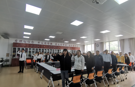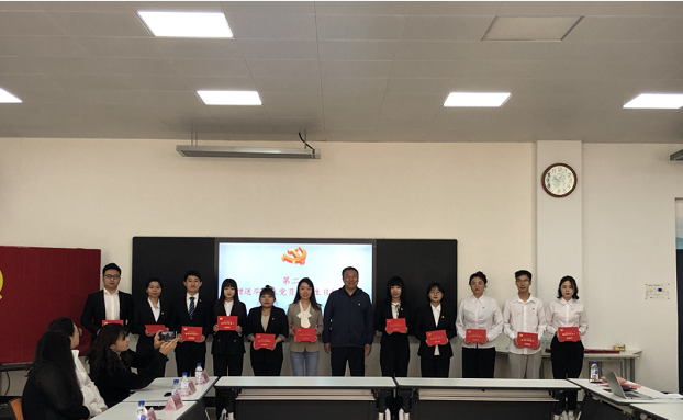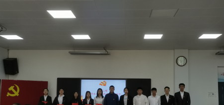 2017级财务管理专业毕业生党员杜秉林带领全体党员重温了入党誓词。在鲜红的党旗下,全体党员举起右手、握紧拳头,庄严宣誓。党员们重温最初入党宣誓时的庄严承诺和坚定决心,在党旗下接受心灵的净化和洗礼,铭记共产党员的政治责任和历史使命。