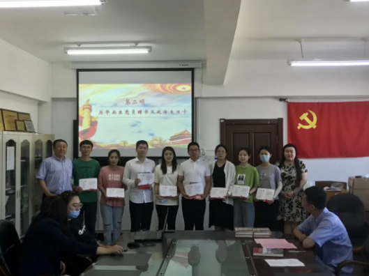 会上,都书记和郝书记为到会的2020届本硕毕业生党员赠授了书籍《习近平在正定》及政治生日卡。全体毕业生党员面向党旗,重温了入党誓词。希望毕业生党员无论何时何地,都要珍视党员身份,牢记党员使命,敢于担当、善于作为。拿起手中这本书时能够想到在党组织的点点滴滴,不忘入党的初心。