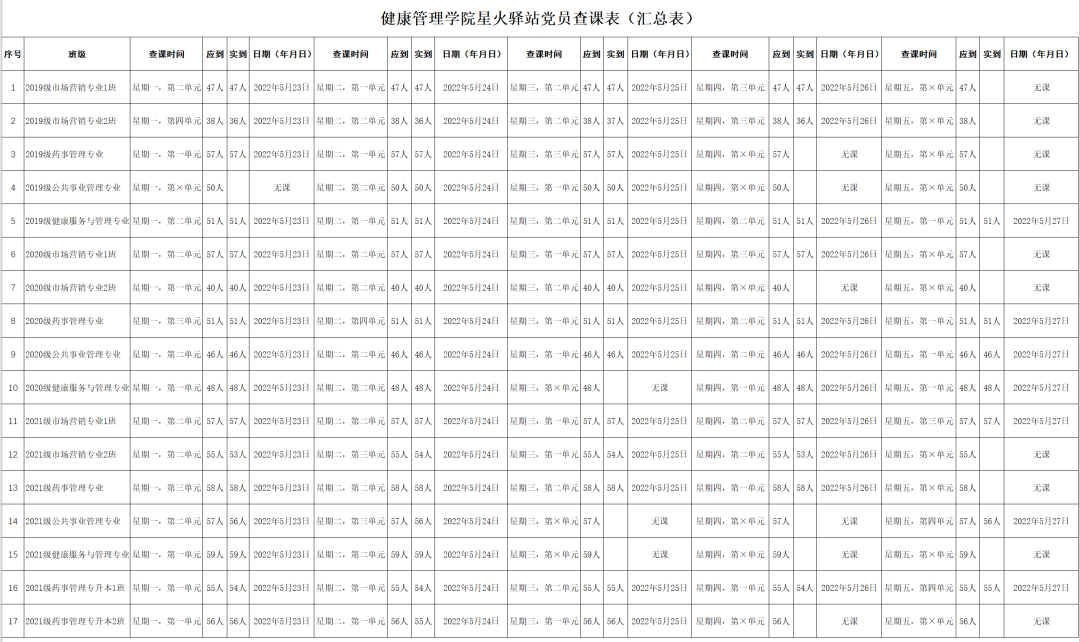 出勤率较好的班级有:2019级市场营销专业1班(出勤率100%)、2019级药事管理专业(出勤率100%)、2019级公共事业管理专业(出勤率100%)、2019级健康服务与管理专业(出勤率100%)、2020级市场营销专业1班(出勤率100%)、2020级市场营销专业2班(出勤率100%)、2020级药事管理专业(出勤率100%)、2020级公共事业管理专业(出勤率100%)、2020级健康服务与管理专业(出勤率100%)、2021级市场营销专业1班(出勤率100%)、2021级药事管理专业(出勤率100%)、2021级健康服务与管理专业(出勤率100%)。