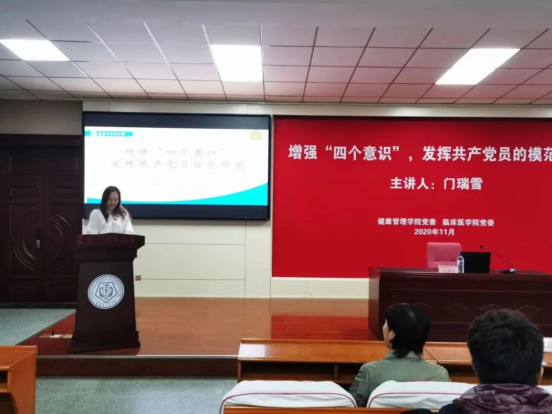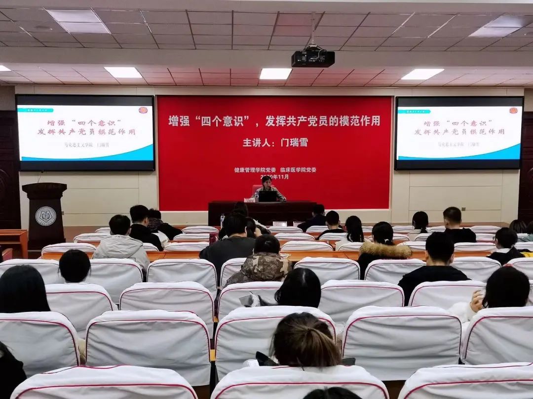 2020年11月16日,bat365官方官网、临床医学院党校学生入党积极分子培训班在致知楼莲心报告厅举行,邀请到马克思学院院长门瑞雪教授作题为《增强“四个意识”,发挥共产党员的模范作用》的专题党课。