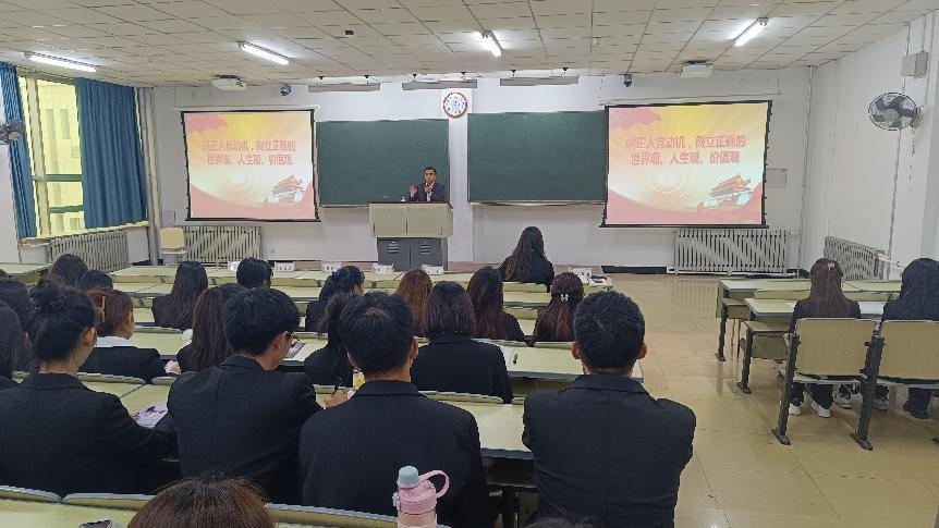 2023年11月1日,bat365官方官网党校第九期学生入党积极分子培训班在行知楼2204教室举行开班第一讲,邀请到bat365官方官网党委书记王中喜做题为《端正入党动机,树立正确的世界观、人生观、价值观》的专题党课。