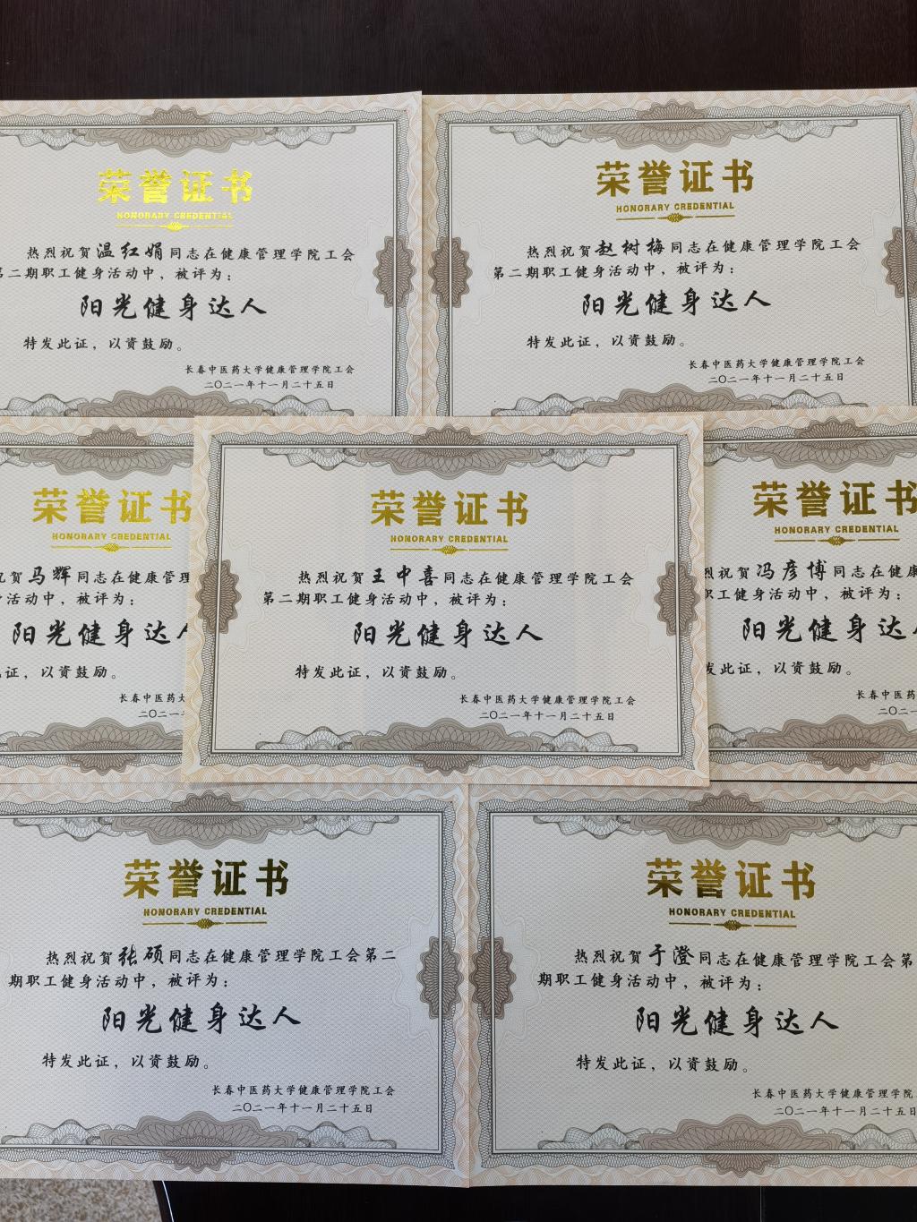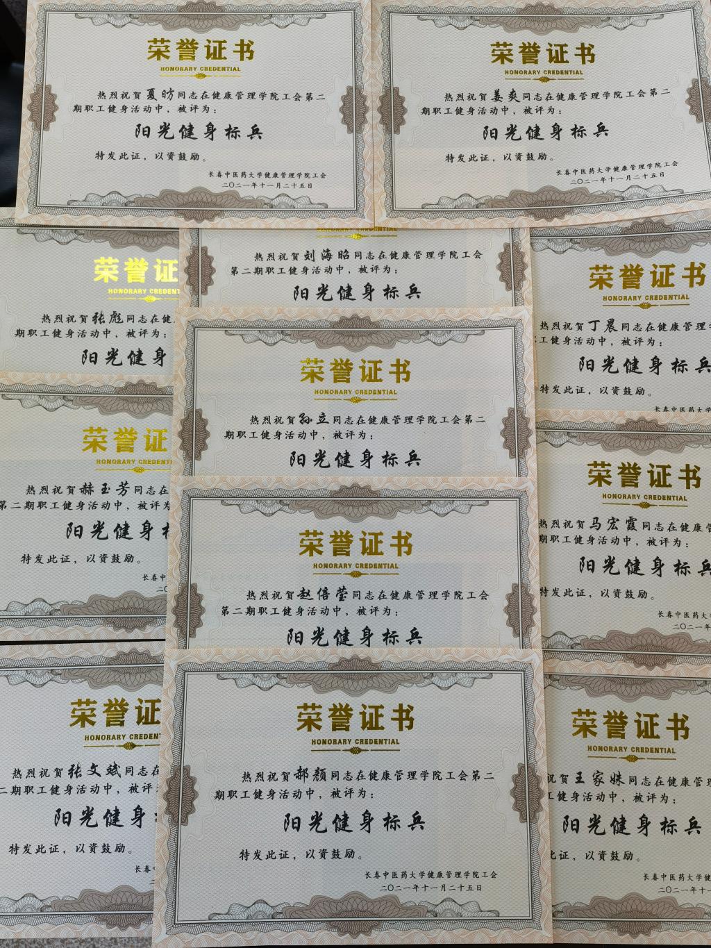12名教师完成了活动要求的每日健走2.1公里,坚持一个月,获得了“阳光行健身标兵”称号;7名教师完成了每日健走2.1公里,每月至少健走25天,获得“阳光行健身达人”称号。学院工会全体教师参加了本次职工健身活动,学院还将继续坚持,为激励老师们形成自主健身的习惯创造良好条件。